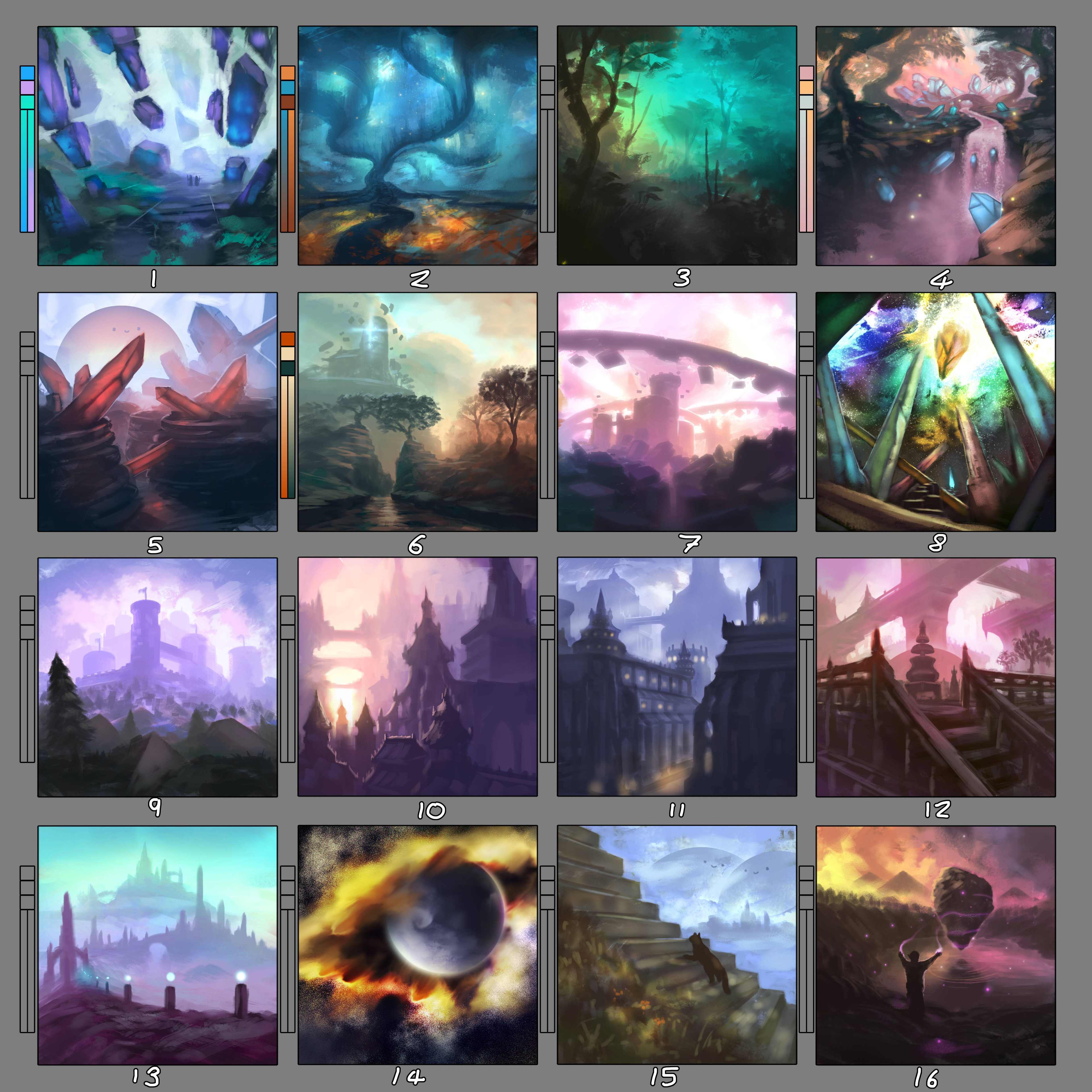 I can do fantasy, sci-fi, nature, historical, modern and fictional environment settings such as cyberpunk, steampunk, etc.